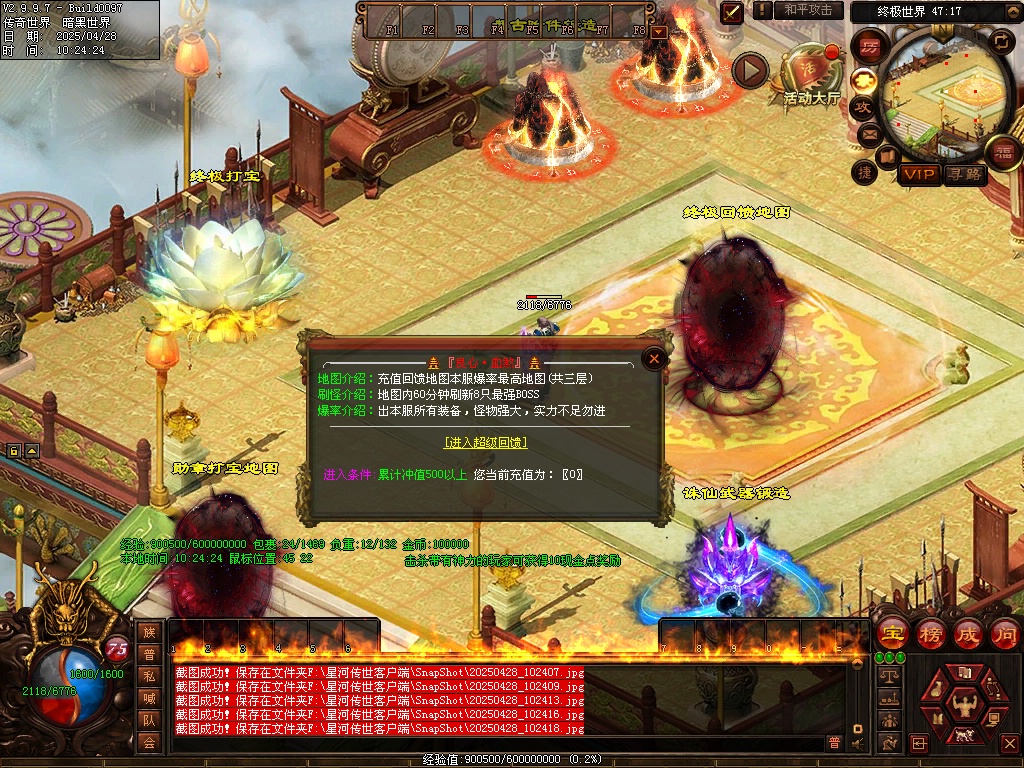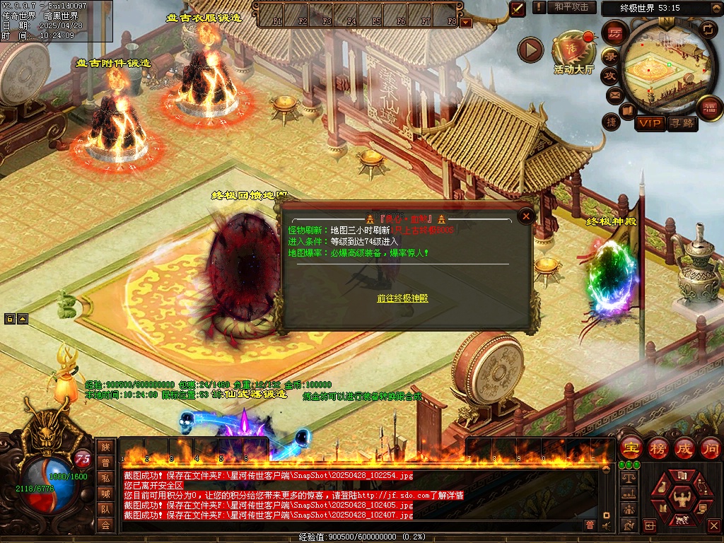 复刻经典地图(如玛法大陆、沙巴克),结合血煞主题的新场景(如血色城堡、煞魔祭坛),融合怀旧与新鲜感。